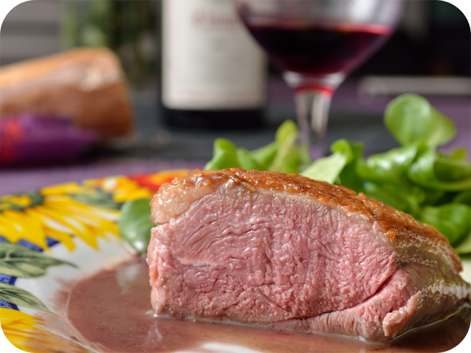 Filet de canette sauce « Marchand de Vin ».